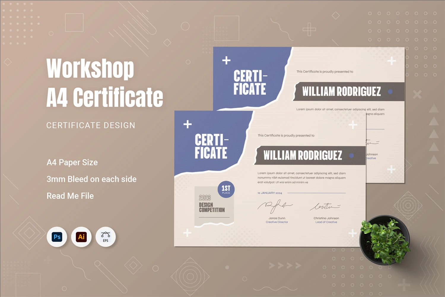 This certificate template can be used for a variety of different purposes in the realms of business, education, fashion, photography, food, lifestyle, architecture, and so on. You dont need to create them from scratch; it's time-consuming. It is completely customizable to suit your brand's colors and corporate fonts.
