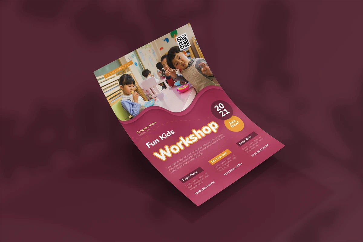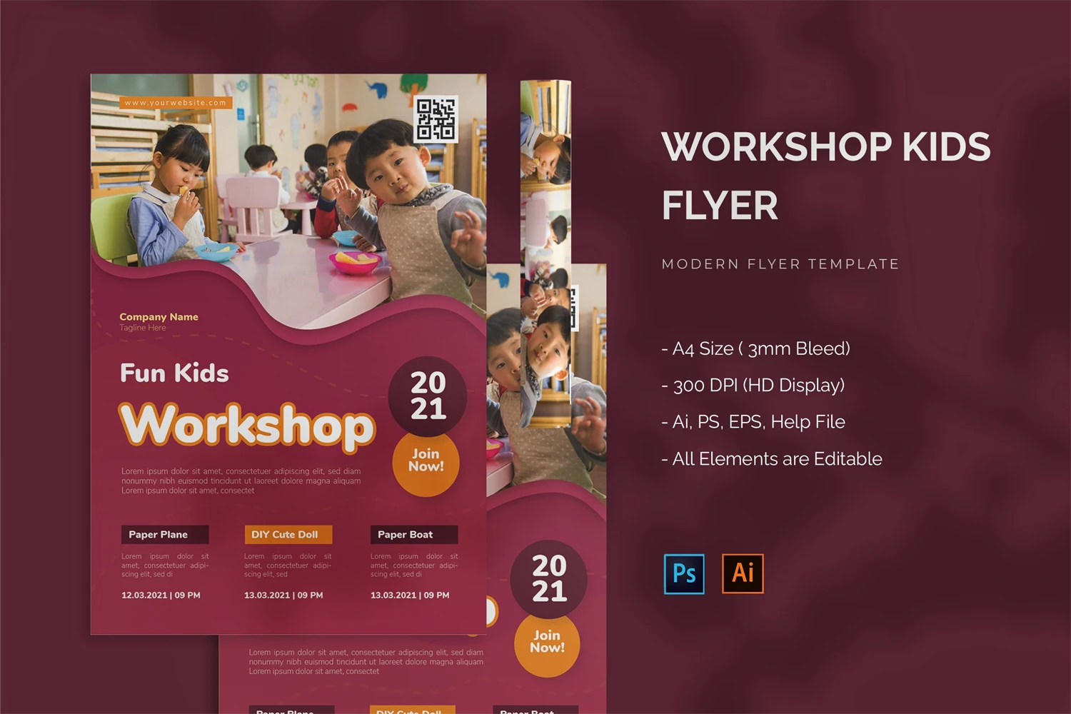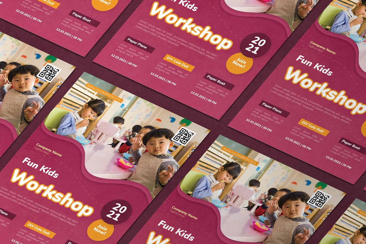 Workshop Kids - Flyer. This Flyer template is designed for your company's business needs. very clean and elegant, and also easily edited and adjusted to your liking