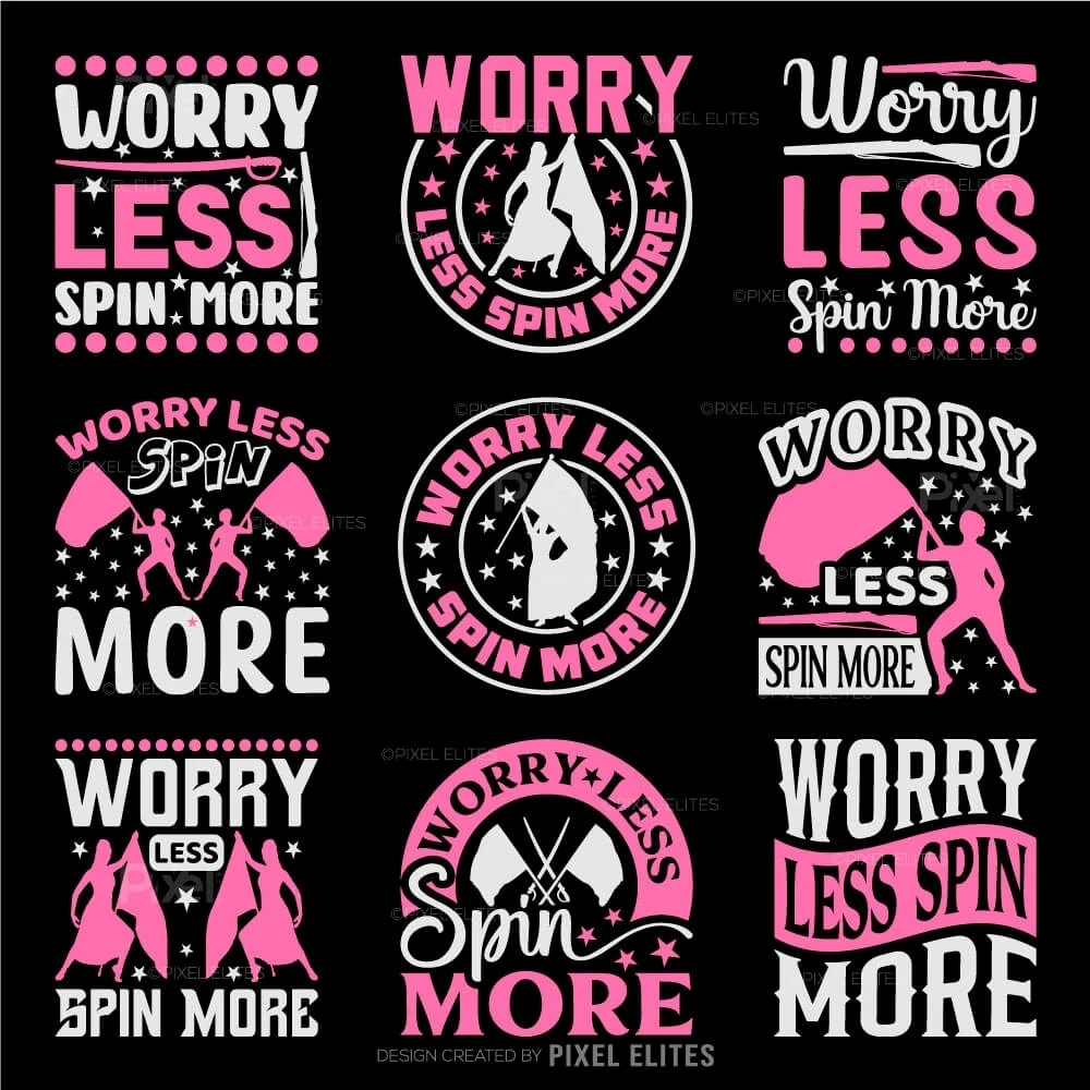 # Worry Less Spin More SVG Cut Files Color Guard T-Shirt Design & DIY Craft Bundle for Cricut