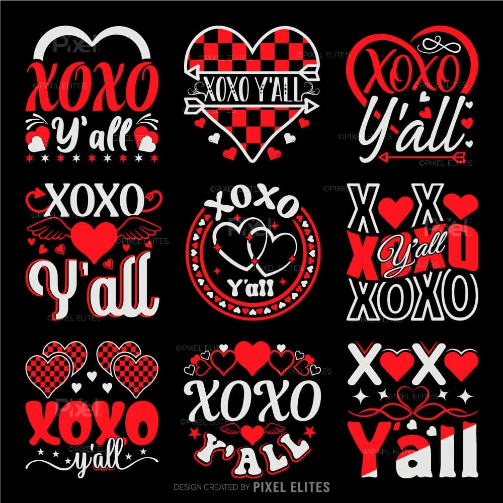 Spread love and southern charm with the "XOXO Y'all" SVG Cut Files, a perfect Valentines Day t-shirt design for Cricut and other cutting machines. Featuring playful hugs, kisses, and love decals, this design blends a warm, friendly vibe with festive romance. Ideal for creating personalized apparel, mugs, cards, and more, this versatile file comes in multiple formats (SVG, DXF, EPS, PNG) for easy use across various projects.