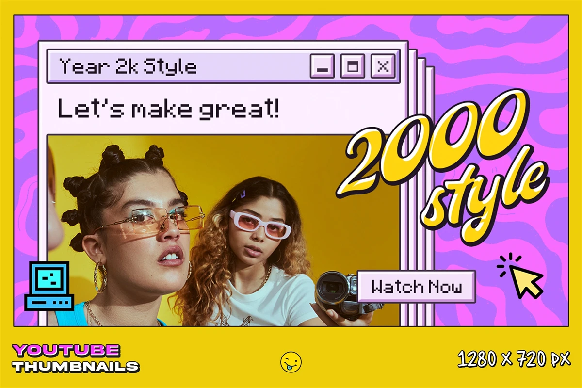 Get back to the 2k year with these funny templates. Vivid colors for your cheerful mood. Cute retro ui elements created with a bit of nostalgia. Old computer user interface.