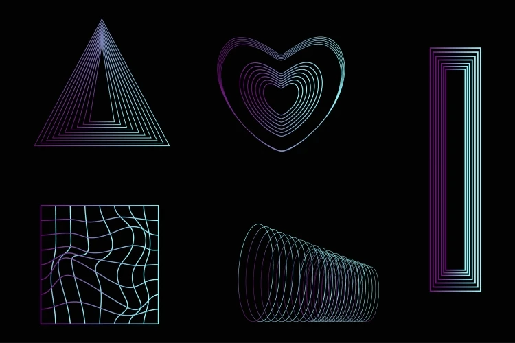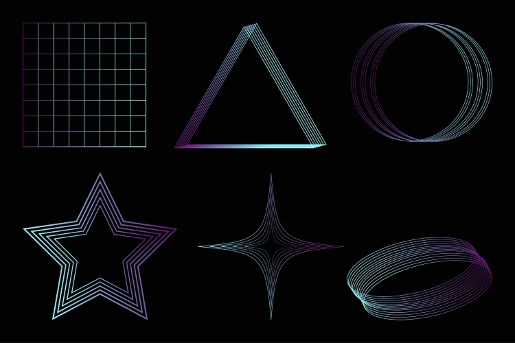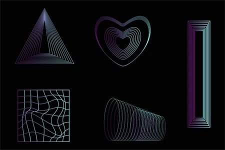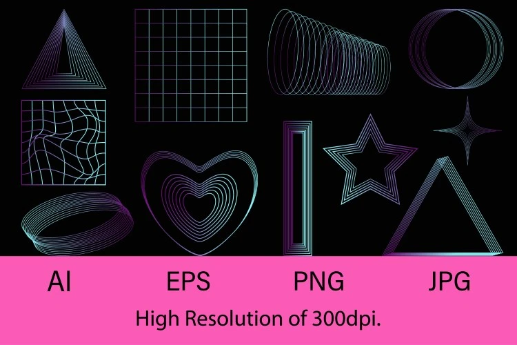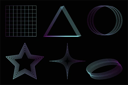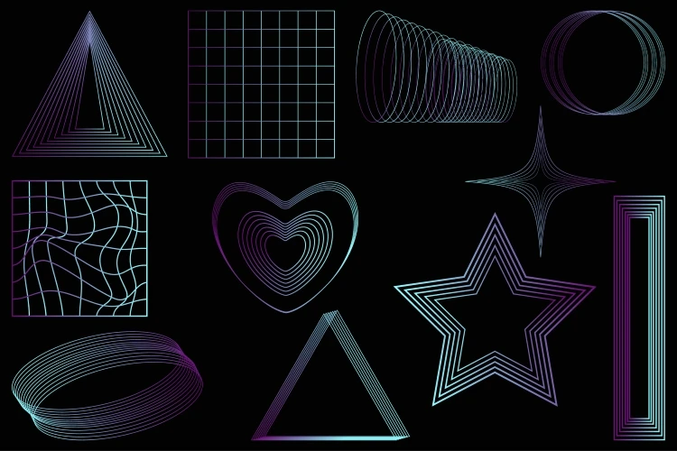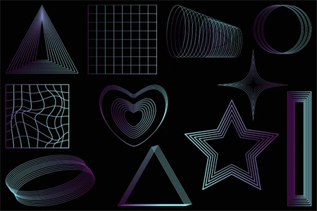 Abstract geometric shapes.Futuristic design elements.Shape set y2k style for banner.Shape set y2k style for poster.Simple shapes.Trendy 90s.Brutalism forms.Y2k aesthetic elements set.Trendy geometric forms.Y2k aesthetic.Shape set y2k style for decoaration.