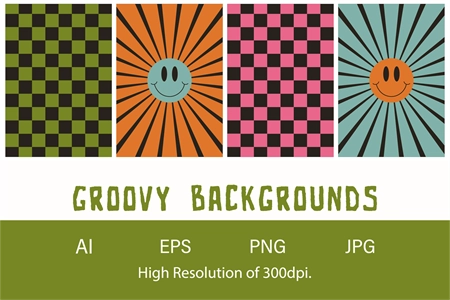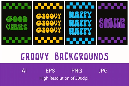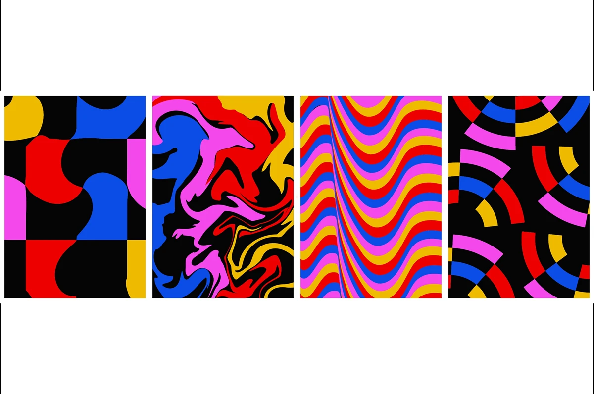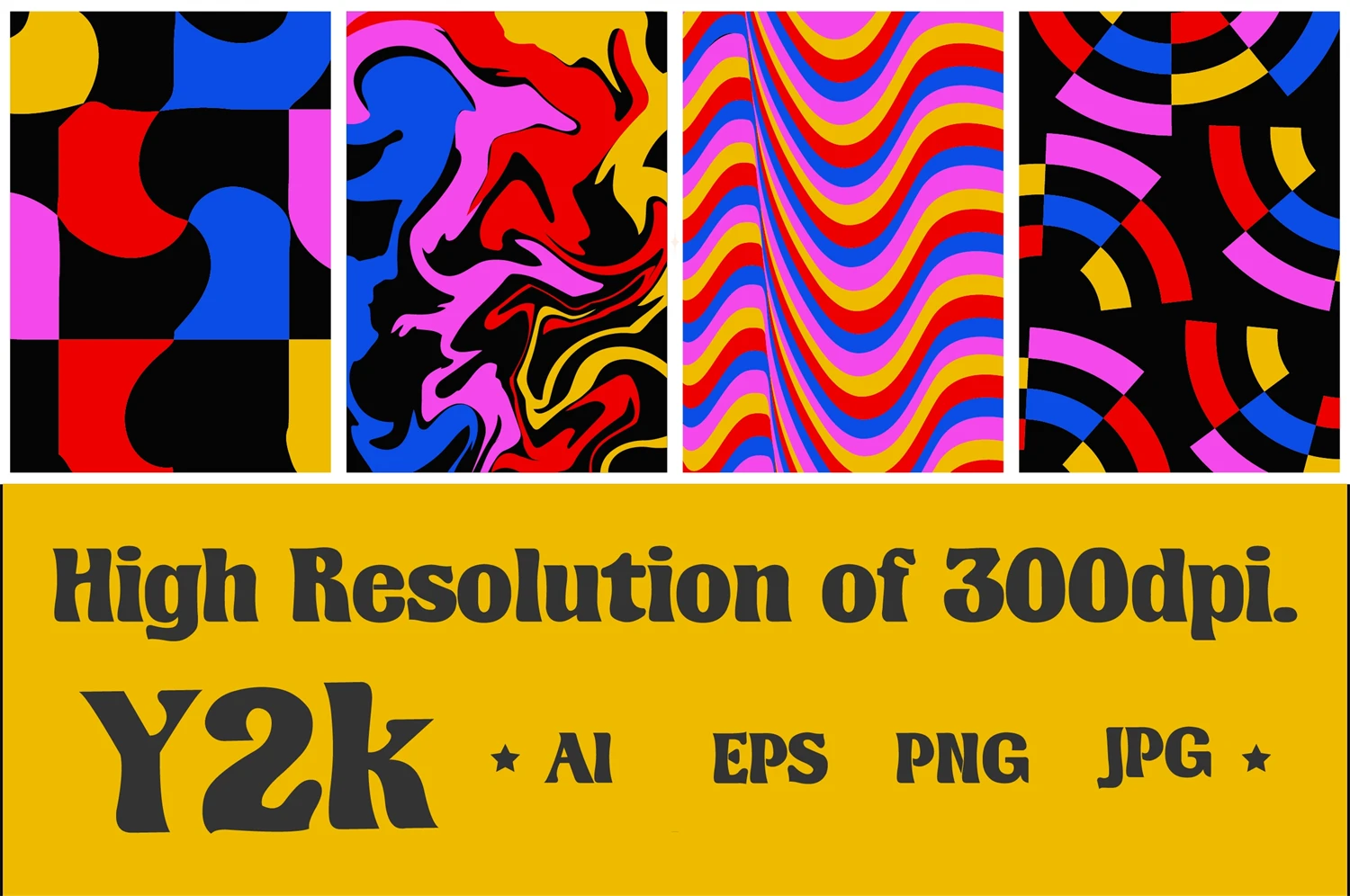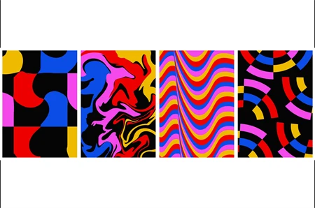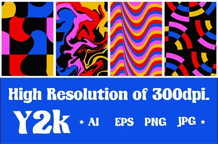 Set of colorful abstract backgrounds.Vector cards in retro psychedelic style.Groovy backgrounds.Vector set.Trendy retro 90s style.Template for print.Designs for covers.Vector illustration of y2k.Nostalgia for 1980s.2000s.Designs for packaging.Y2k aesthetic.