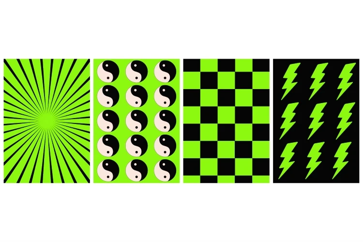 Set of abstract backgrounds.Vector cards in retro psychedelic style.Y2k aesthetic.Groovy backgrounds.Vector set.Trendy retro 90s style.Template for print.Designs for covers.Vector illustration of y2k.Nostalgia for 1980s.2000s.Designs for packaging.