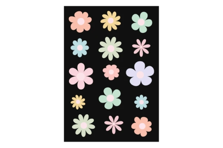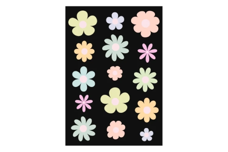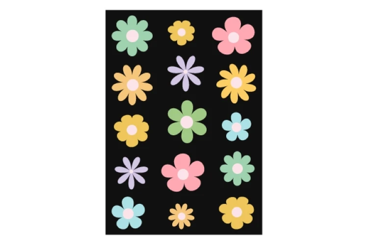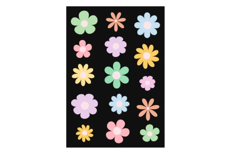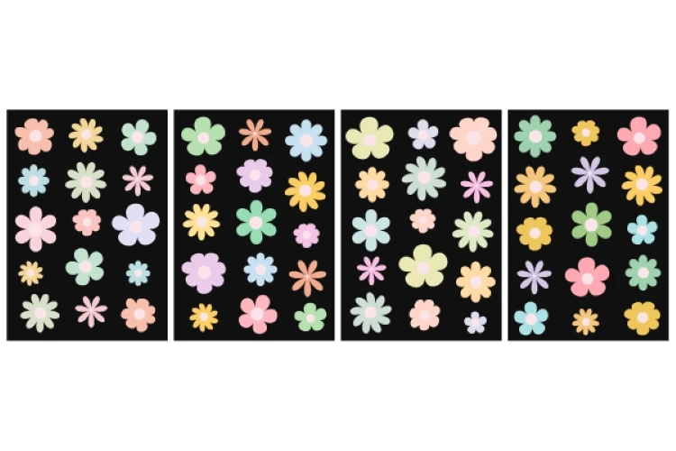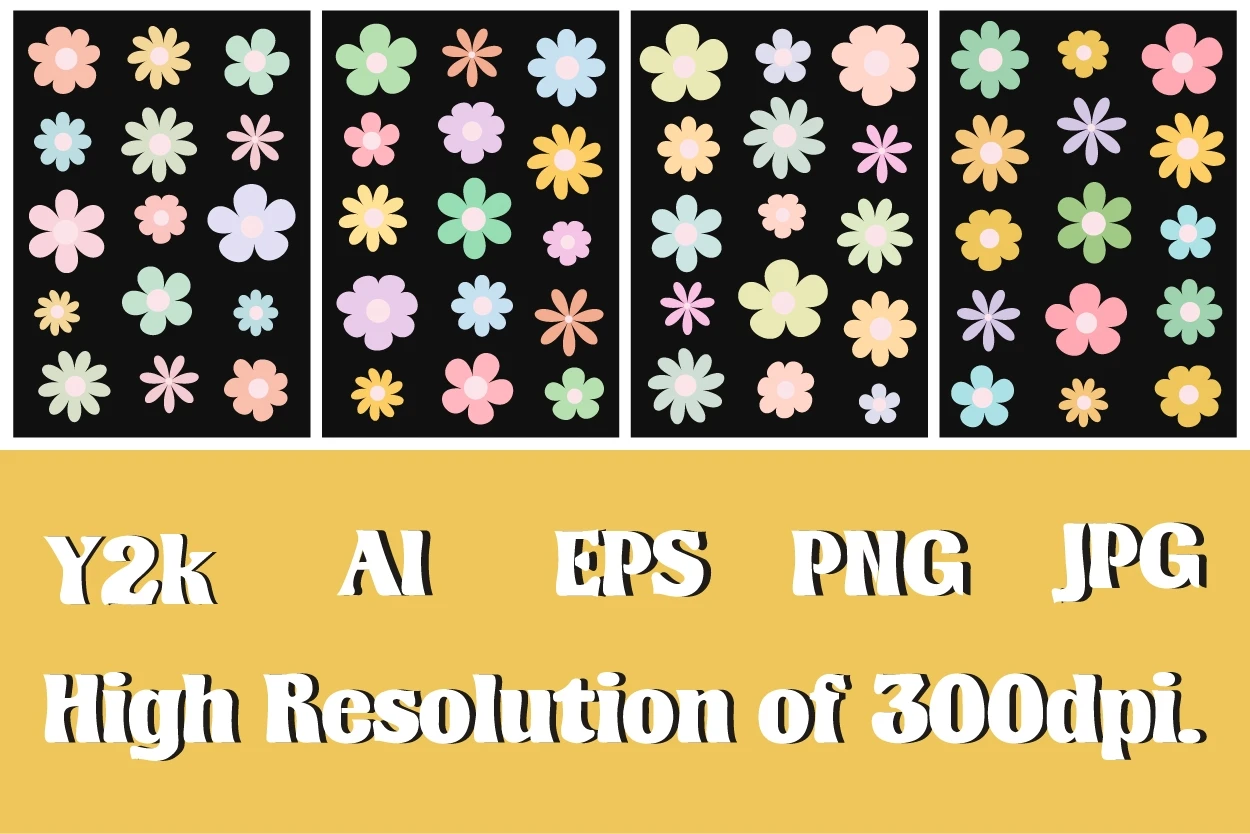 Set of colorful abstract backgrounds.Daisy flowers set.Y2k aesthetic.Vector cards in retro psychedelic style.Groovy backgrounds.Vector set.Template for print.Designs for packaging.Designs for covers.Nostalgia for 1980s.2000s.Trendy retro 90s style.Vector illustration of y2k.