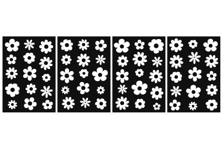 Set of colorful abstract backgrounds.Daisy flowers set.Y2k aesthetic.Vector cards in retro psychedelic style.Groovy backgrounds.Vector set.Template for print.Designs for packaging.Designs for covers.Nostalgia for 1980s.2000s.Trendy retro 90s style.Vector illustration of y2k.