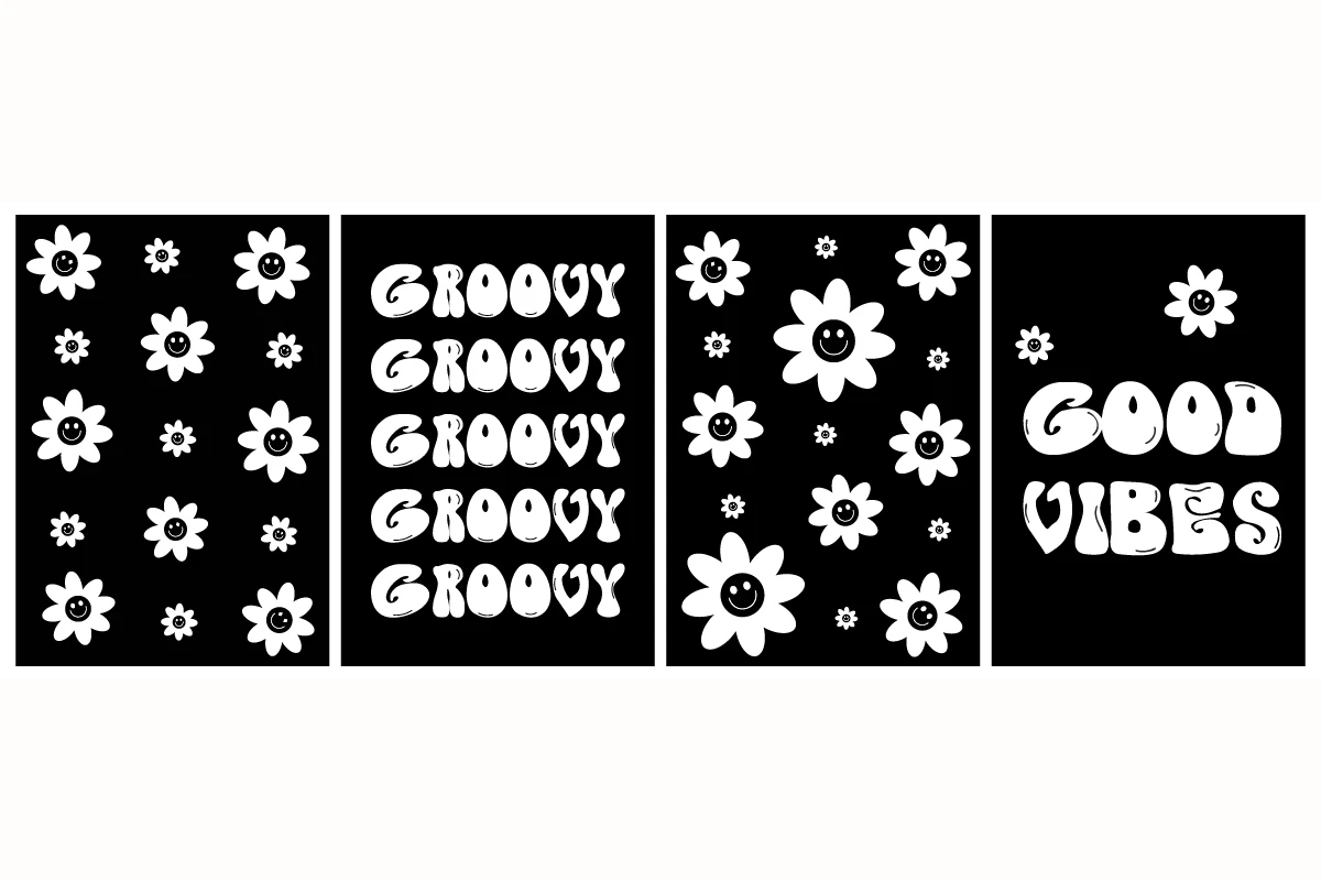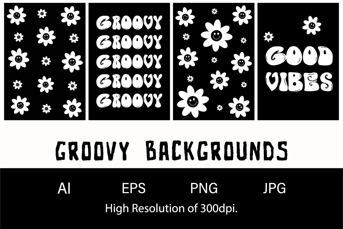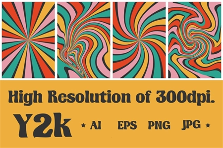Set of colorful abstract backgrounds.Daisy flowers set.Y2k aesthetic.Groovy backgrounds.Vector set.Vector cards in retro psychedelic style.Template for print.Designs for packaging.Designs for covers.Vector illustration of y2k.Nostalgia for 1980s.2000s.Trendy retro 90s style.