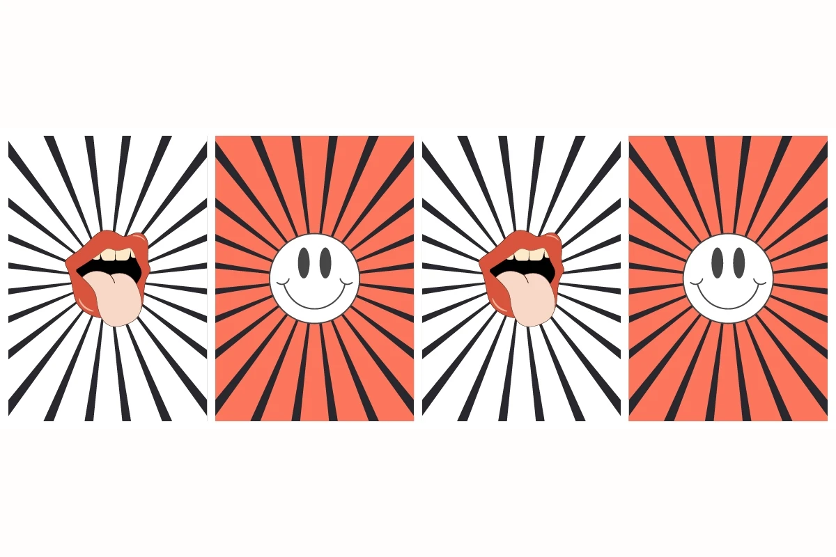 Set of colorful abstract backgrounds.Y2k aesthetic.Groovy backgrounds.Vector cards in retro psychedelic style.Trendy retro 90s style.Vector set.Template for print.Designs for packaging.Designs for covers.Vector illustration of y2k.2000s.Nostalgia for 1980s.