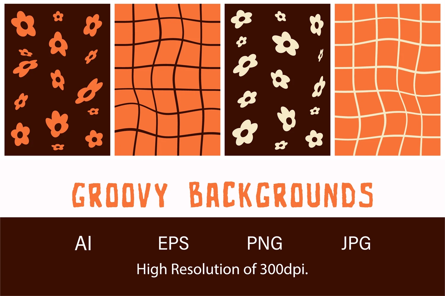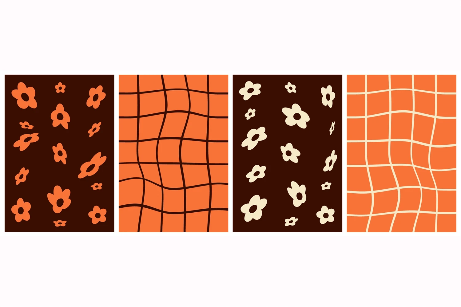 Set of colorful abstract backgrounds.Y2k aesthetic.Daisy flowers set.Groovy backgrounds.Vector set.Vector cards in retro psychedelic style.Template for print.Designs for packaging.Designs for covers.Vector illustration of y2k.Nostalgia for 1980s.2000s.Trendy retro 90s style.