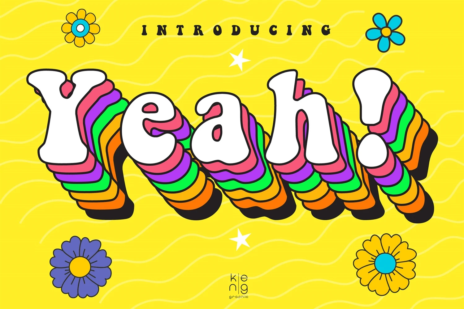 Yeah is a cool comic-style display font with a great punchline. Everything written with this font will instantly be recognizable and will grab attention. It will work great for comic-style books, online games, classic/retro event posters, posters, movie titles, eye-catching social media posts, or anything that needs a youthful yet bold touch.