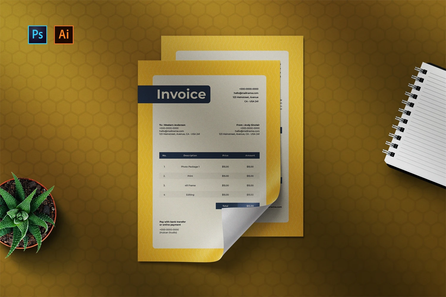 The invoice designs from our templates will present your brand with a professional look. Your invoices will look stylish and functional.