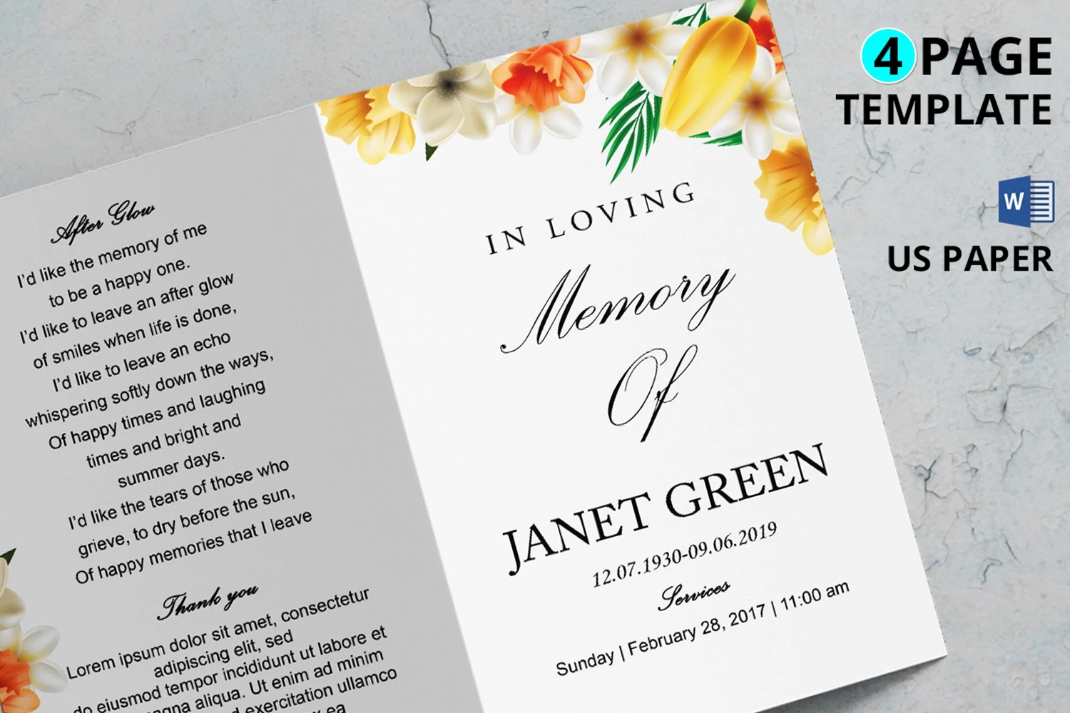 8.5x11 Inches Word, Publisher and CANVA Funeral Program Template.