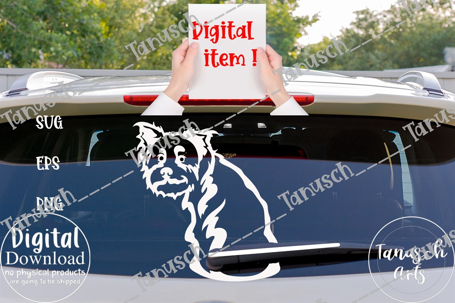 Yorky Dog Car Window Decal Wagging Tail Dog Graphic Graphic absolutely cool digital dog sticker for your car.