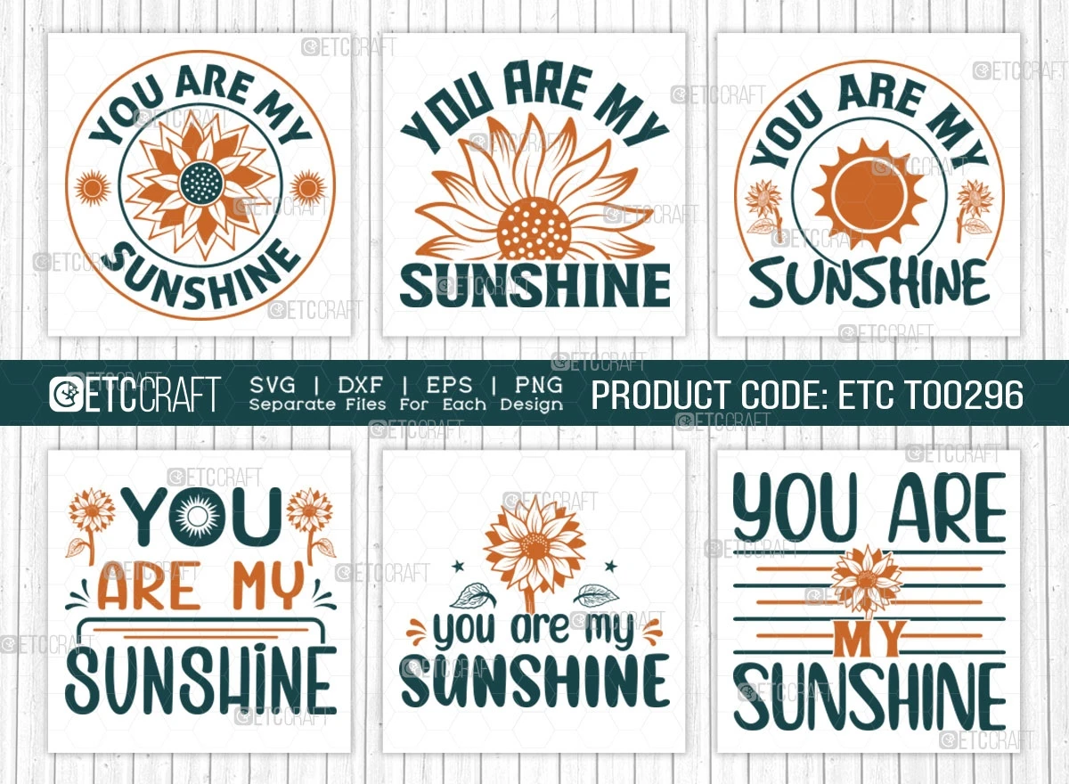 Our "You Are My Sunshine" SVG Bundle - Embrace the warmth of summer and the beauty of sunflowers with this delightful collection of flower and floral-themed SVG designs. Perfect for a wide range of creative projects, this bundle brings a touch of sunshine to your creations with its captivating sunflower quotes and charming designs. Let your imagination bloom with the endless possibilities this SVG bundle offers!