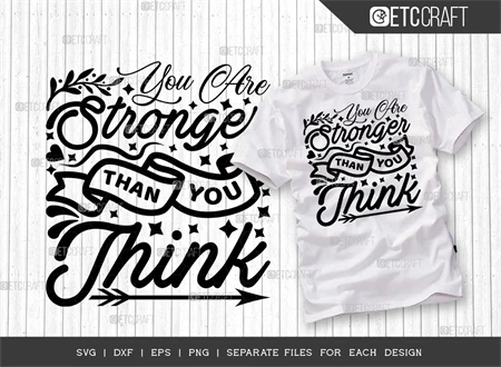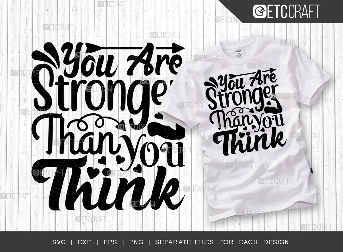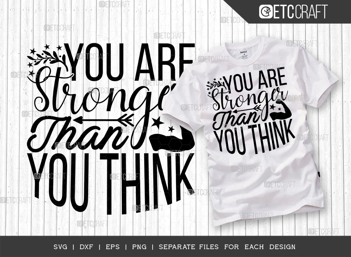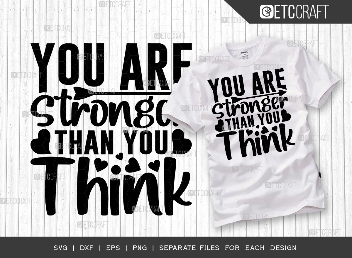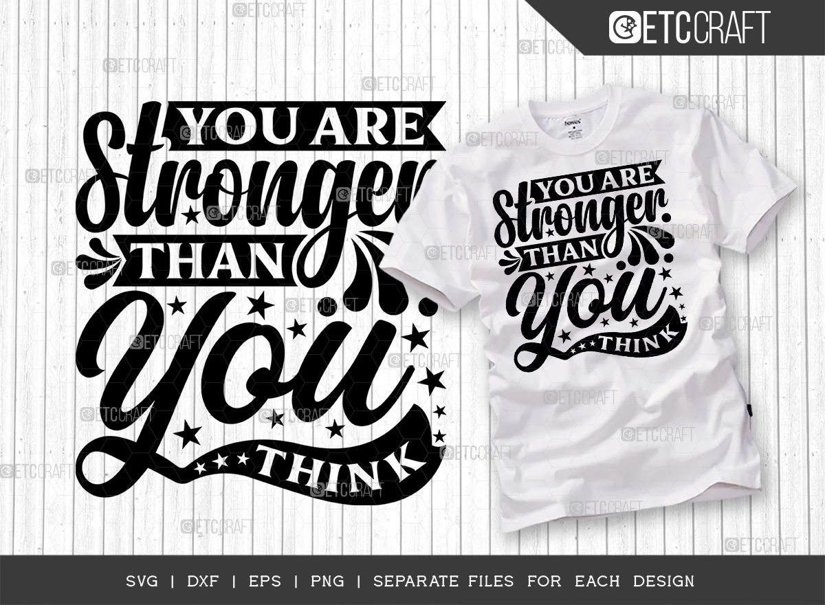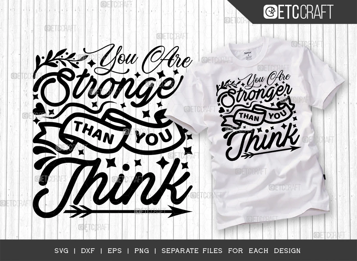 The SVG files in this bundle feature the popular quote "You Are Stronger Than You Think." This quote is a powerful reminder that you are capable of more than you may realize. It can help you to stay motivated and focused on your goals, even when things get tough.