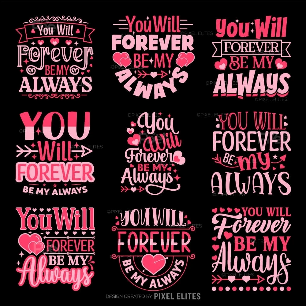 Express everlasting love with the You Will Forever Be My Always SVG Cut Files, a beautiful design perfect for crafting heartfelt Valentines Day t-shirts, cards, and gifts using your Cricut or other cutting machines. This timeless message makes every project meaningful and memorable.