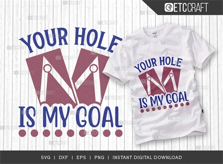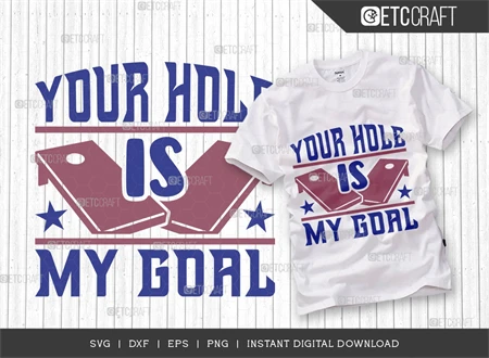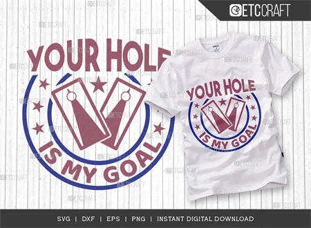 What is included in the SVG Bundle? The bundle contains the "Your Hole Is My Goal" cornhole quote design in SVG format, ready for customization.