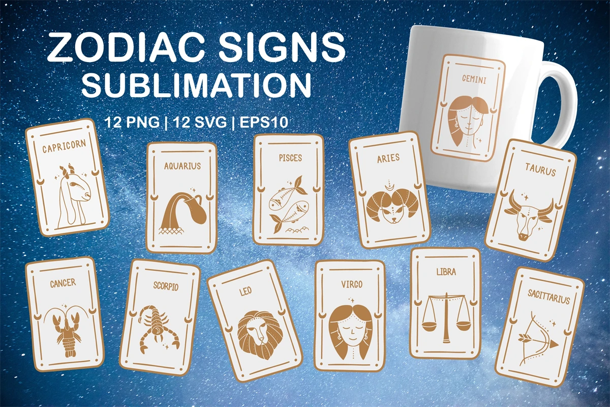 Starry and cosmic, introducing celestial zodiac sign illustrations! Individually saved for ease of use, these star signs night sky inspired elements are perfect for your mystical, astrological signs, and mythological designs.