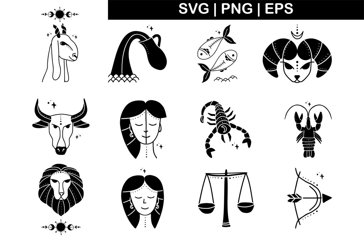 Starry and cosmic, introducing celestial zodiac sign illustrations! Individually saved for ease of use, these star signs night sky inspired elements are perfect for your mystical, astrological signs, and mythological designs.