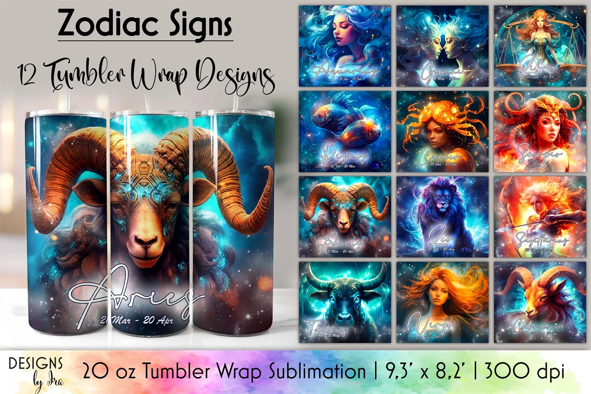 12 ZODIAC SIGNS TUMBLER WRAP BUNDLE.